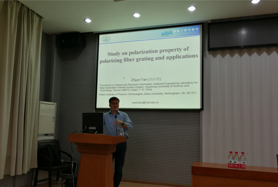 应kaiyun登录中国入口登录院长丁华锋教授及科发院邀请,华中科技大学光学与电子信息学院闫志君博士于10月9号来我院作题为“倾斜光纤光栅偏振特性及其应用”学术报告。