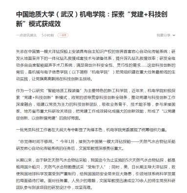 近日,学院将探索“党建+科研创新”模式获得的成效进行了总结和报道,并被学校组织部、一点资讯、中国党政理论网刊载,引发多方关注。
