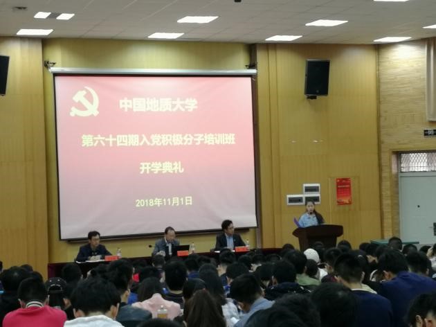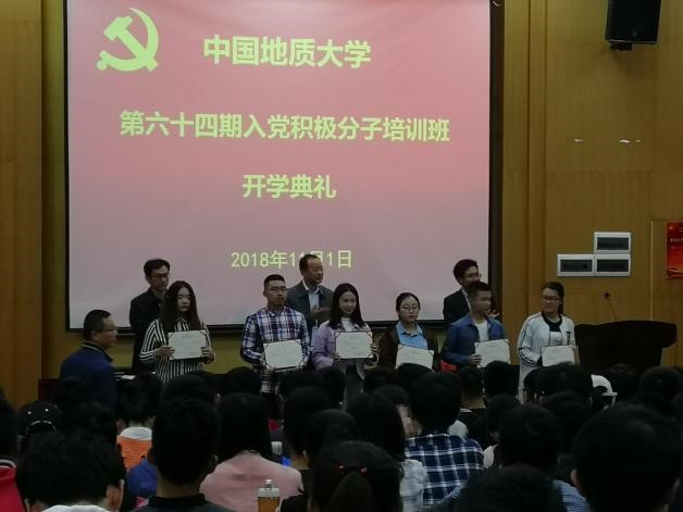 11月1日4:00,kaiyun登录中国入口登录(武汉)第六十四期入党积极分子培训班开学典礼在教三109举行。校党委书记何光彩老师、组织部副部长刘治国老师、组织部朱丹老师及全体六十四期入党积极分子参加典礼。