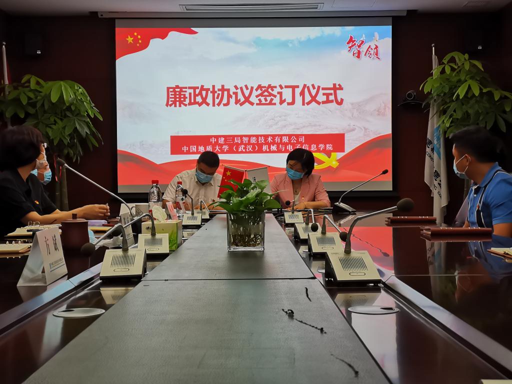 为进一步推动校企合作,加强kaiyun官网和企业在产学研合作中的廉政建设, 6月19日,应中建三局智能技术有限公司党总支书记陈应邀请,学院党委副书记、纪委书记于晓舟,团委书记杜育走访智能公司,并参加“颂清风 扬正气”云上朗读者活动。智能公司领导班子、部门负责人等32人参加交流活动。