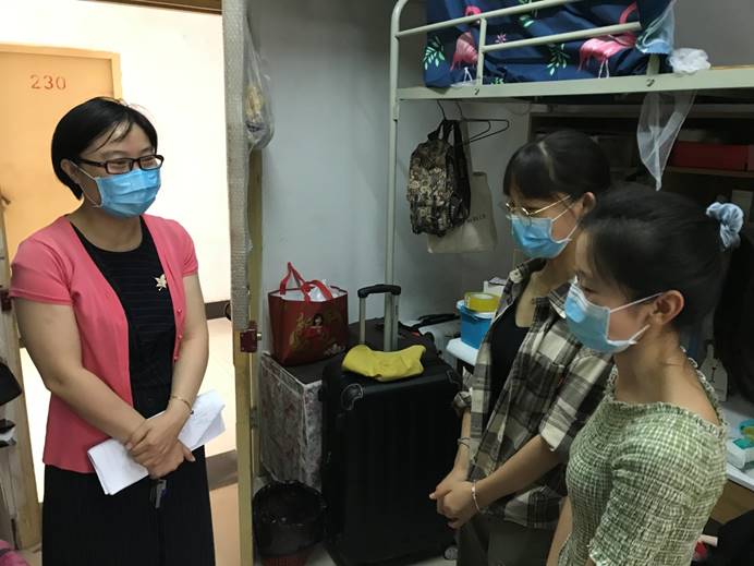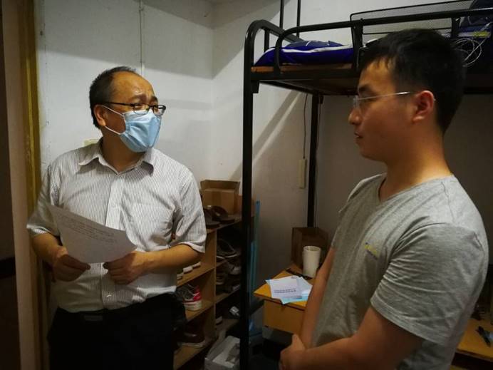 你展云帆济沧海,我挂婵娟待子还。为欢迎各位毕业生返校,荷花池前树立起以“心系家国,不负韶华”为主题的毕业墙,教二楼前“南望山下,荷花池畔,朝思暮想,盼君归来”的横幅格外醒目,6月24日,kaiyun官网第一批返校毕业生顺利“回家”。当天下午,学院党委书记瞿祥华,党委副书记于晓舟,副院长李波、副院长文国军、副院长罗杰和毕业研究生导师、毕业本科年级班主任、全体辅导员分组走访返校毕业生宿舍,了解同学们的思想动态,为各位毕业生送去学院的关心和祝福。