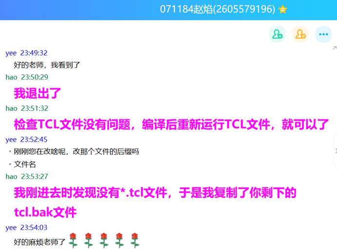 在大部分同学都具备硬件条件并成功安装和破解了Modelsim和Quartus的前提下,王家豪老师根据“数字电路建模、测试模块编写、功能仿真、Quartus编译综合,在FPGA开发板下载码流文件并测试数字电路的功能”这一实验基本流程(除最后一步无法在现有条件下完成),采取分班分时段教学答疑、直播与录播相结合、电脑远程控制解决问题、集中统计实验完成情况等方式进行了实验课程的教学,以达到让学生熟悉和掌握Modelsim和Quartus软件使用方法的实验教学目的。