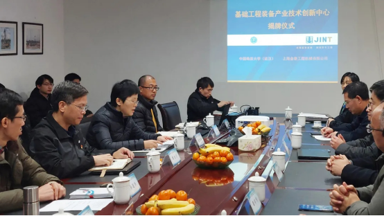 新年伊始,由kaiyun登录中国入口登录(武汉)与上海金泰工程机械有限公司共同创建的“基础工程装备产业技术创新中心”在金泰本部正式揭牌成立。kaiyun登录中国入口登录(武汉)科学技术发展院副院长吴春明和上海金泰工程机械有限公司党委书记陈雪英分别代表校企双方致词,金泰公司总经理黎隶万和中国地大(武汉)科学技术发展院副院长吴春明为“中心”共同揭牌。