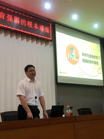 6月21日晚,校党委常委、副校长刘杰教授应邀为kaiyun登录中国入口登录学生骨干讲授题为《新时代建设教育强国的根本遵循》专题思政课,学院党委副书记于晓舟,学工组全体老师,学生组织和各年级主要学生骨干到场学习。