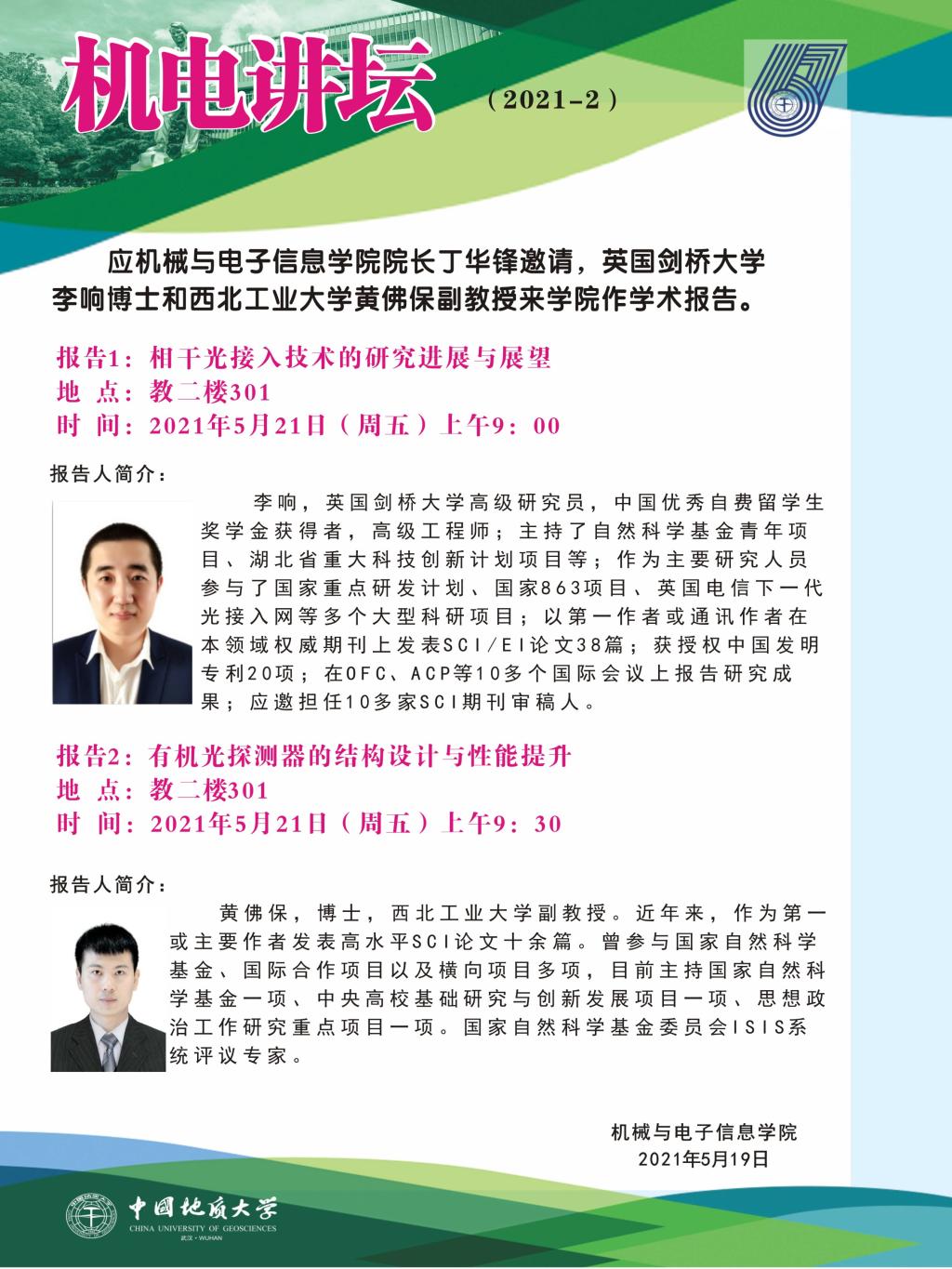 机电讲坛2021-2:英国剑桥大学李响博士/西北工业大学黄佛保副教授
