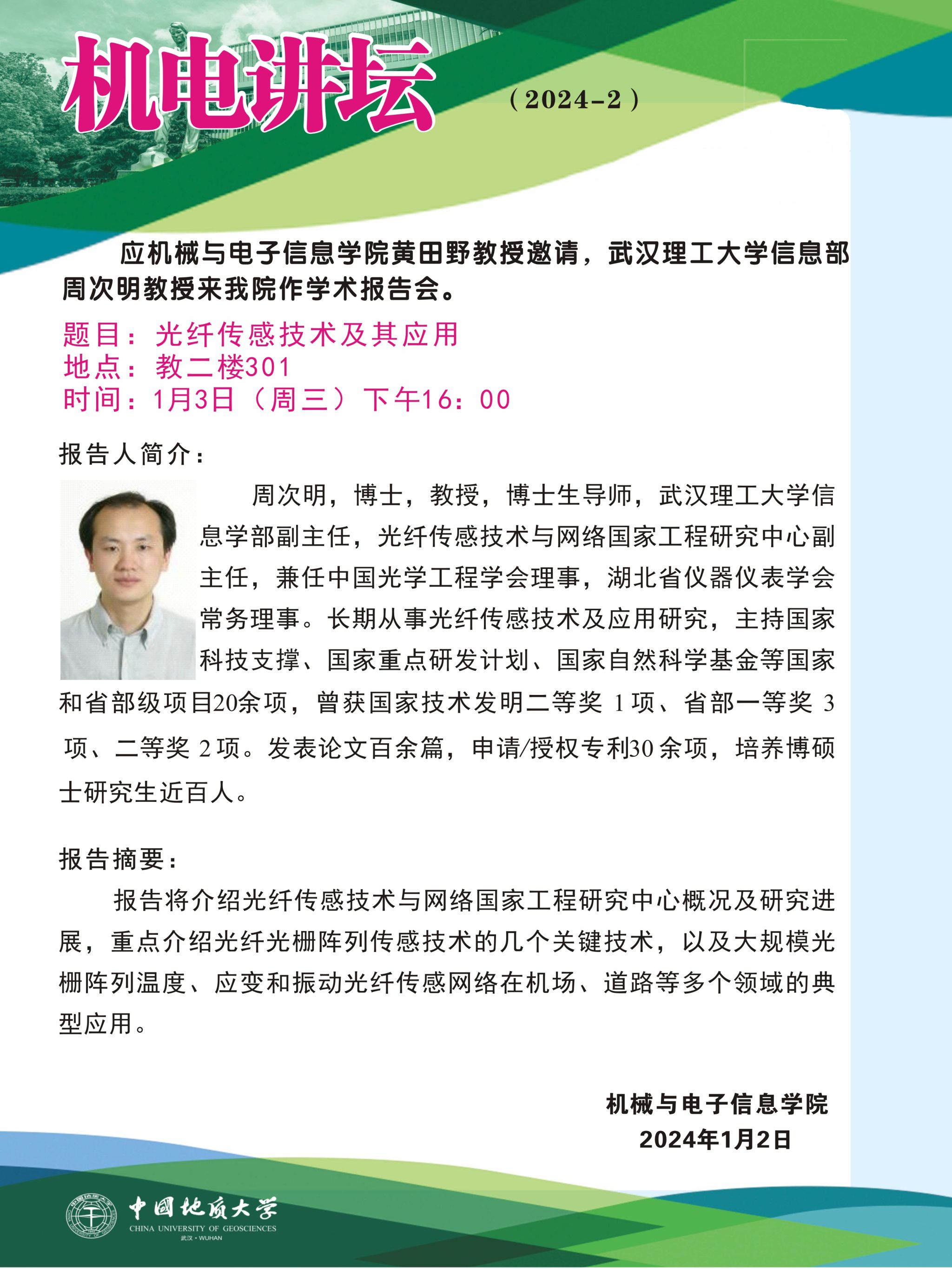 【1月3日】机电讲坛(2024-2):武汉理工大学信息部周次明教授来kaiyun官网作学术报告会