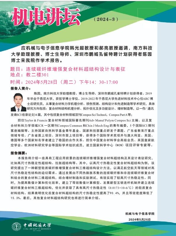 【5月28日】机电讲坛(2024-3):南方科技大学助理教授陈园来kaiyun官网作学术报告会