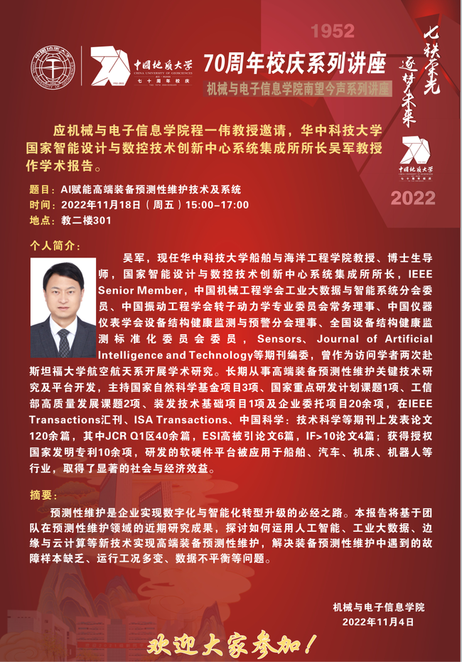 机电讲坛(2022-25):华中科技大学吴军教授作学术报告