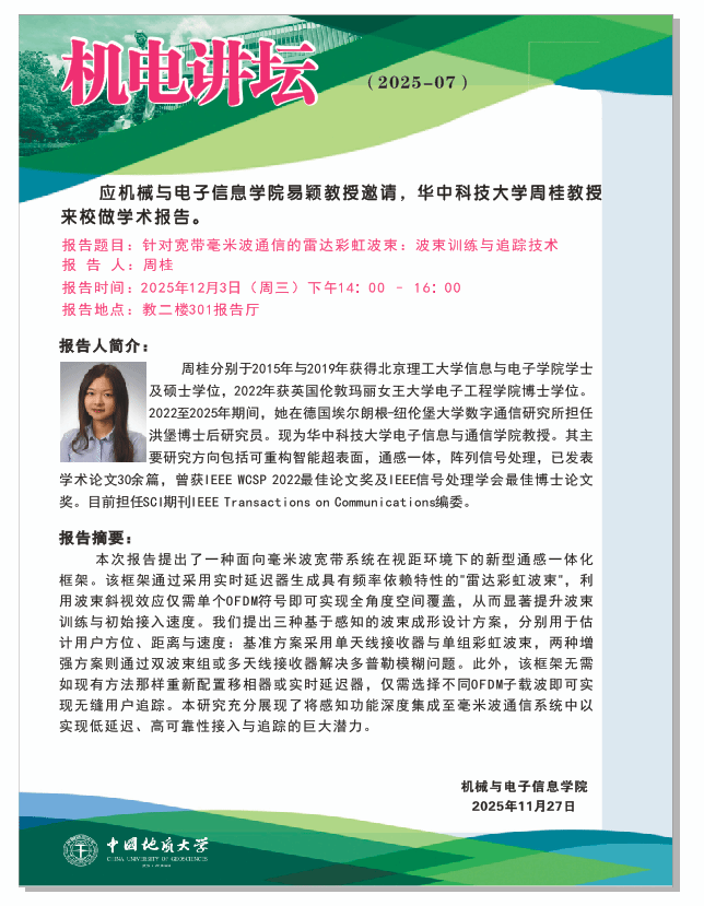 【12月3日】机电论坛(2025-07):华中科技大学周桂教授来校做学术报告