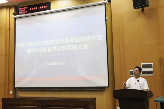 5月25日,kaiyun官网召开2020级学生未来发展分析大会暨2023年春季学期年级大会。学院就业专员、职业规划师罗采薇,往届学生代表张松、杨天祺、辛毅应邀出席大会,2020级全体本科生参加大会,辅导员刘彪主持大会。