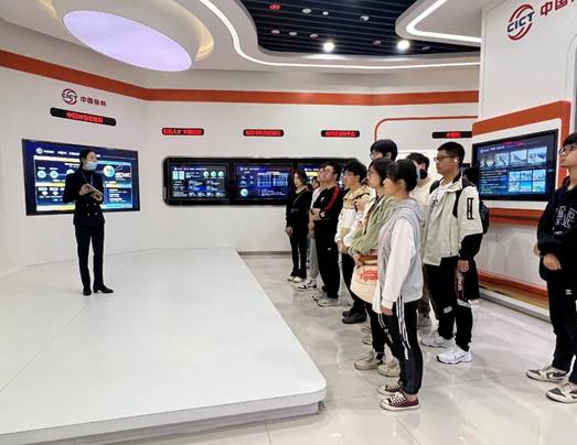 同学们首先参观了企业展厅。讲解员向大家介绍了烽火集团在海洋网络、利用“四超”优势服务全球,“上天入海”通信网络、5G背景下智慧城市战略部署等领域上的成长与创新。通过观看习近平总书记在2018年视察烽火集团时的讲话视频,同学们深刻感受到国企的责任与担当,充分认识到要想实现新发展理念,科技创新是第一位。