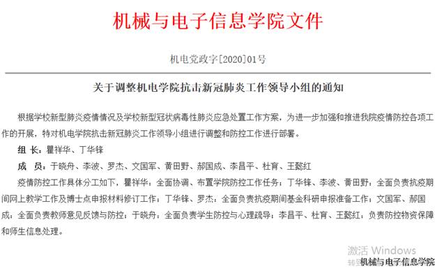 学院第一时间成立抗击肺炎疫情工作领导小组