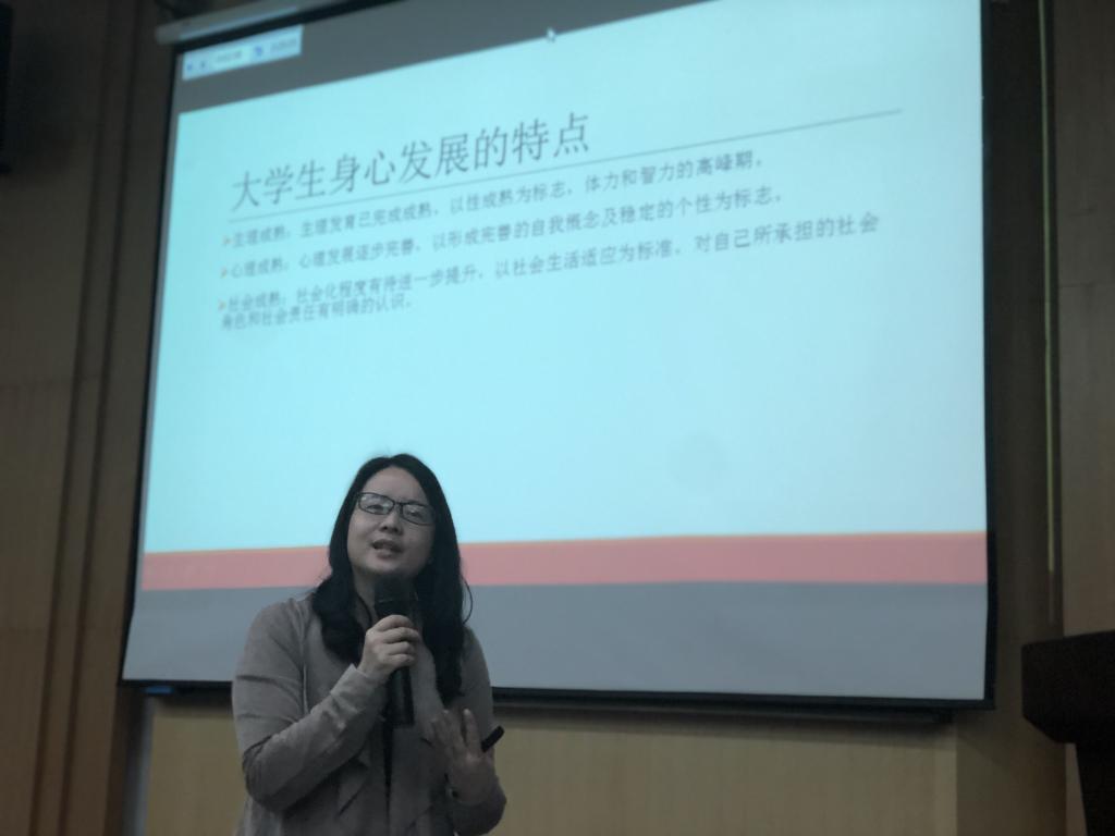 周春燕以《大学生常见的心理压力及其应对》为题为同学们进行了一堂生动活泼的专题讲座。讲座中,她从“大学生身心的发展特点与主要任务”,“大学生常见心理问题与压力源”,“提高心理健康水平的技巧”三个方面进行讲授。