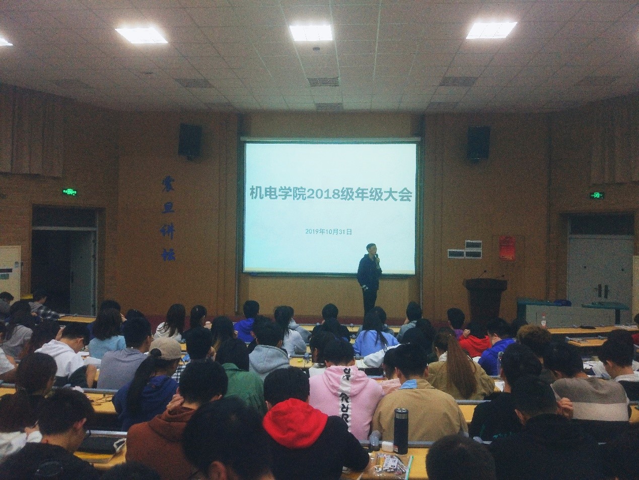 杜育在会中分析了2018级各班的学习情况,他强调,同学们应在大二阶段加强学习意识,要向优秀的同学学习,有挂科的同学应及时重修课程。他提到,同学们在学习之余应积极参加科技比赛,通过比赛将所学知识运用到具体实践中去。杜育介绍了学校和学院的相关奖励与资助政策,为同学们解疑答惑。还就上课、早操等情况进行纪律规范教育,并着重强调了年级课堂与早操纪律、请假制度、宿舍文明以及集体晚自习制度。同时提醒同学们注意人身财产安全,遇到问题及时向家长、辅导员、班干部反馈。