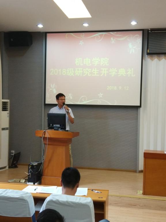 瞿祥华讲话。他要求:研究生导师要坚持立德树人,坚持教学改革与创新;研究生应树立远大理想,加强自身的品德修养,明是非,辨真理,增强真才实干,培养综合能力,积极融入社会,为社会发展做贡献。