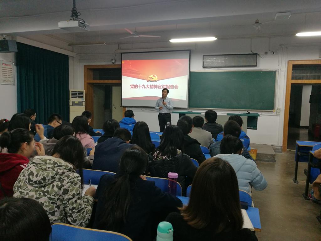 (通讯员 胡畔)11月28日晚,kaiyun官网全体学生党员在教一楼205开展党的十九大精神学习活动。本次学习活动邀请到武汉市招商局副局长胡何宇同志担任主讲嘉宾。