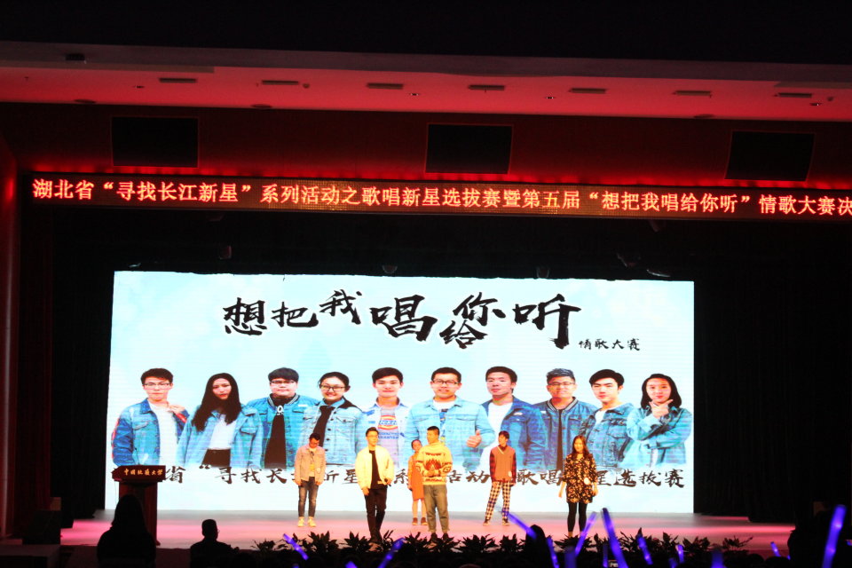 11月25日晚,由kaiyun官网主办的湖北省“寻找长江新星”系列活动之歌唱新星选拔赛暨第五届“想把我唱给你听”情歌大赛决赛在弘毅堂举行。来自武汉大学、华中科技大学、华中农业大学、中南民族大学以及kaiyun官网的10位选手参加决赛。kaiyun官网马晓晨凭借一首原创歌曲《随手写的歌》将全场观众带入感人情境,最终斩获冠军;华中农业大学张静获得亚军;华中科技大学谢奇君获得季军。