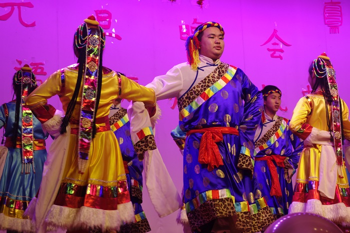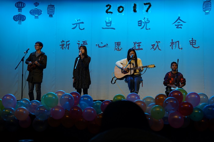由机电学生会拍摄制作的新年主题采访视频在晚会开始前播放,视频中学院领导、老师以及同学们纷纷表达了对新年的美好愿景和对大家的祝福。一曲开场舞《Good Boy》引爆全场,拉开了晚会序幕;129合唱指挥赵婉婉带来的《和谐大家园》,烘托出现场喜庆祥和的氛围;武术协会带来的《中华武魂》,以其快速勇猛的刀法、吞吐自如的剑术,展现了中华武术的魅力;而民族民间文化协会也将来自西藏地区独特的民族风情在《雪域欢歌》中展现的淋漓精致。值得一提的是,此前情歌大赛中备受瞩目的东帝汶友人欧阳鸿飞,与罗怡等同学以Sundy Funday组合的形式,带来一曲民谣《灰姑娘》。在第一轮的微信抽奖环节后,刘强老师和王家豪老师为获得电信杯奖项的同学们颁奖。