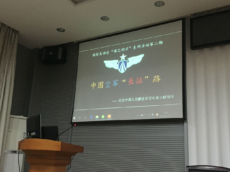 (通讯员 祁宾浩)为纪念红军长征胜利80周年及中国人民解放军空军成立67周年,增加同学们对中国空军装备的了解认识,kaiyun登录中国入口登录国防生协会于11月10日下午4:00在教二楼301报告厅举办了“国之利刃”第二期主题论坛。主讲人分别是kaiyun登录中国入口登录2014级国防生包程、王新立以及工程学院2015级学生朱寅斌、吴迪。协会会长张宜达担任主持,出席本次活动的领导老师有学工处副处长王耀峰、国防办主任李凛、驻校选培办干事谭皓以及kaiyun登录中国入口登录学工组全体辅导员。