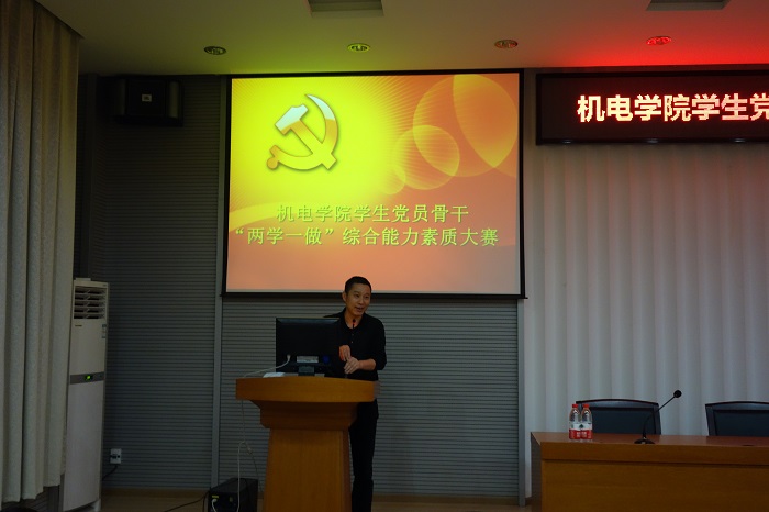 (通讯员 黄梅娇 易靓)5月18日晚7点,kaiyun登录中国入口登录“两学一做”系列活动之学生党员骨干综合能力素质大赛在教二楼301举行。学工处副处长张建和老师,研工部副部长陈慧老师,党委组织部冷再心老师,kaiyun登录中国入口登录党委副书记齐世学老师,学院辅导员许小康、黄梅娇、杜育担任本次大赛评委,学院本科生党支部、研究生党支部共10支队伍参赛。本次大赛由院团委书记刘强主持。