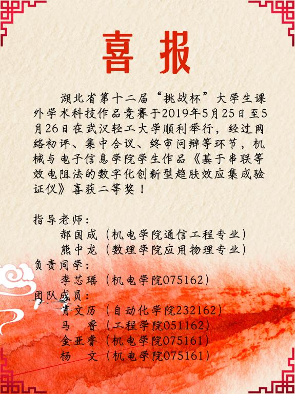 [2019年6月]kaiyun官网学生作品荣获第十二届“挑战杯”湖北省二等奖