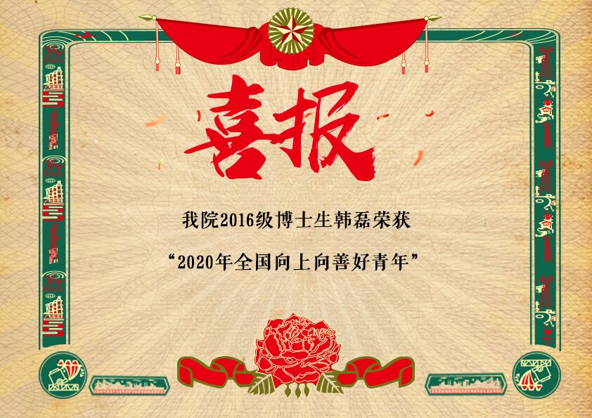 [2020.5]kaiyun官网2016级博士生韩磊 荣获 “全国向上向善好青年”