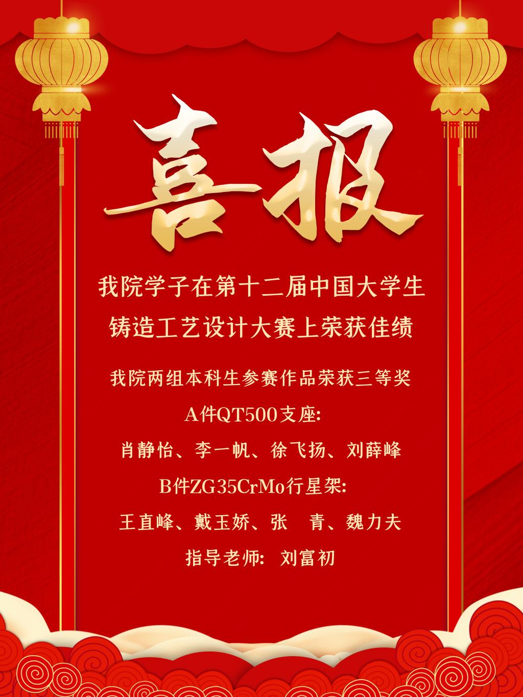 [2021.5]kaiyun官网学子在第十二届中国大学生铸造工艺设计大赛上荣获佳绩