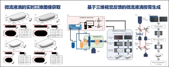微流控芯片先进控制技术:采用三维全息机器视觉技术实时获取微流体动力学参数,并通过反馈控制系统完成微流液滴的生成、停滞、融合以及分类等精准操控。
